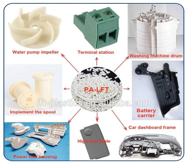 Polyamid 6 Uzun Cam Elyaf Takviyeli Naylon Pa6 Gf30'dur. Performansı maksimuma çıkarmak için fiber ve matriks reçinesini eritmek üzere bir çizim işlemini benimser. Uzun cam elyaf takviyeli kompozitlerin rijitliği, mukavemeti ve dayanıklılığı, birçok piyasada metallere hafif bir alternatif olarak yaygın olarak kullanılabilmektedir.